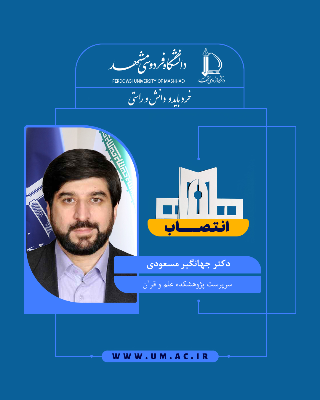 دکتر عبدالرضا جوان جعفری، رئیس دانشگاه فردوسی مشهد در حکمی، دکتر جهانگیر مسعودی را به عنوان «سرپرست پژوهشکده علم و قرآن» منصوب کرد.